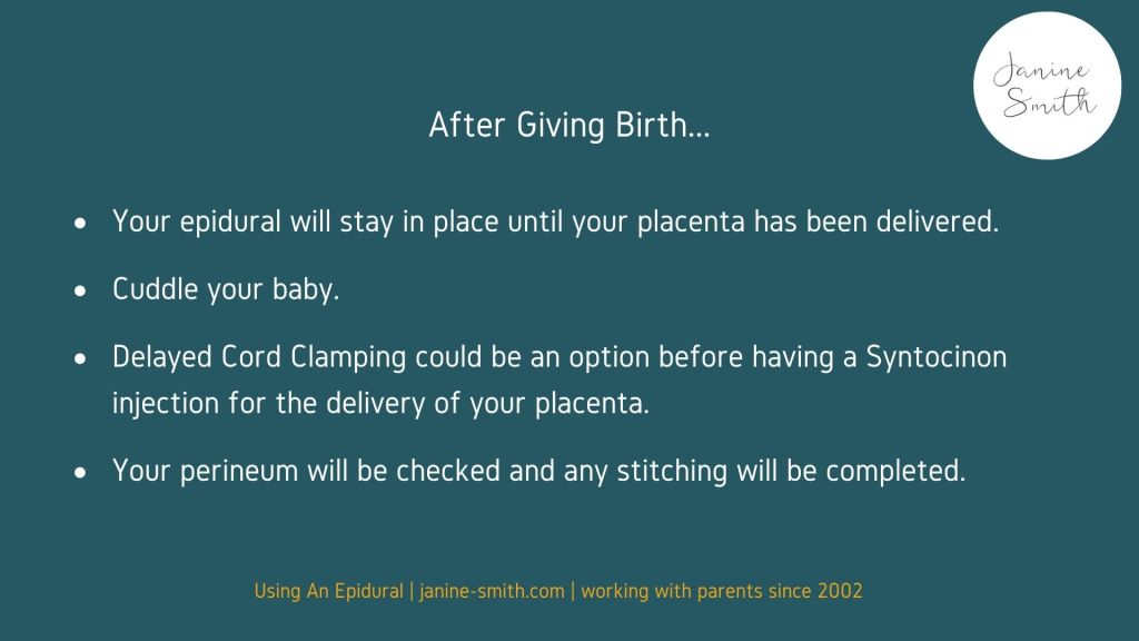 - It can slow your labour which increases the need for a Syntocinon drip.