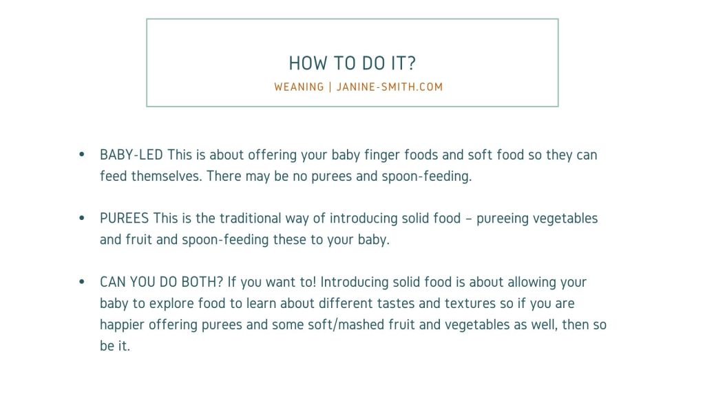 Having worked with parents for a number of years, I know how different the questions and concerns can be about babies and food – I encourage you to find what works best for you and your baby, to go at your baby’s pace and to try not to stress about this next step.
