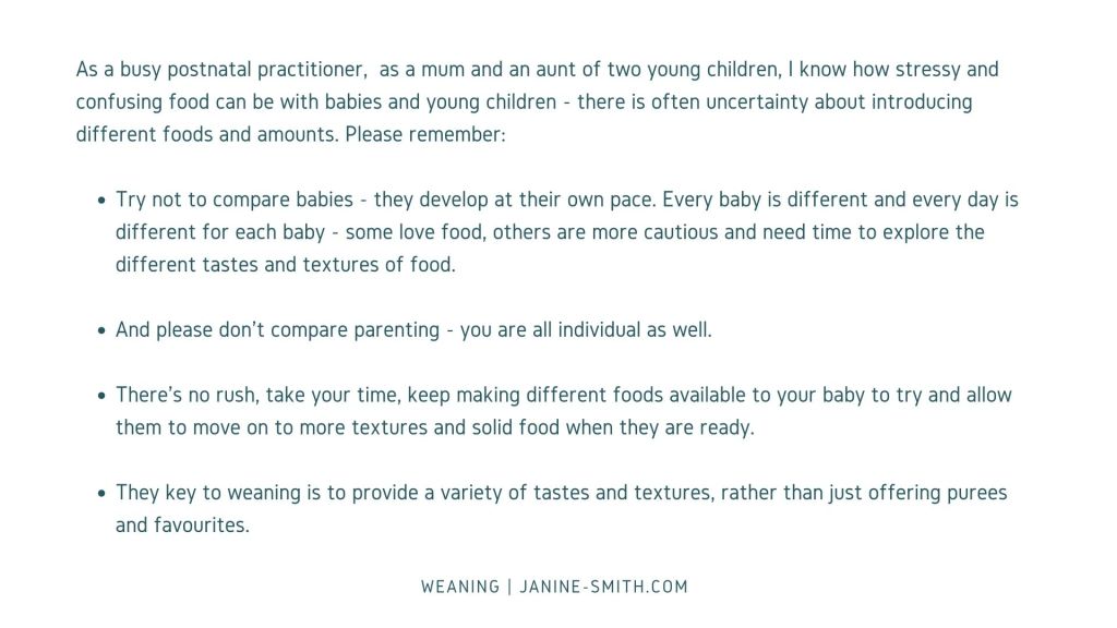 And please don’t hesitate to message me below if you would like to arrange a conversation to talk through weaning your baby or moving on with more food.