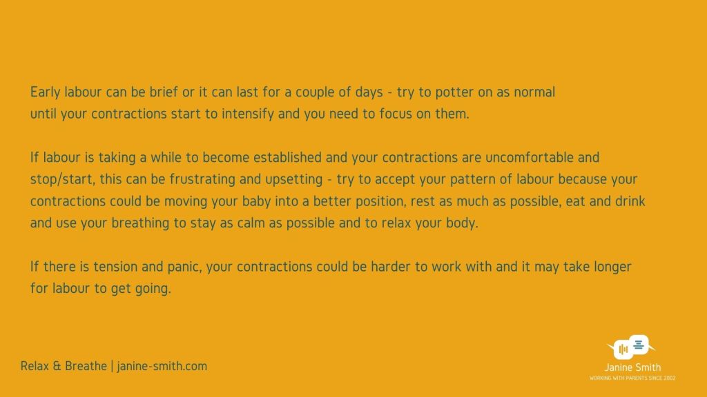 You have been using and developing your relax and birth techniques during your pregnancy and this module focuses on mindset and how you can use these strategies with your contractions and for calm during labour and birth.