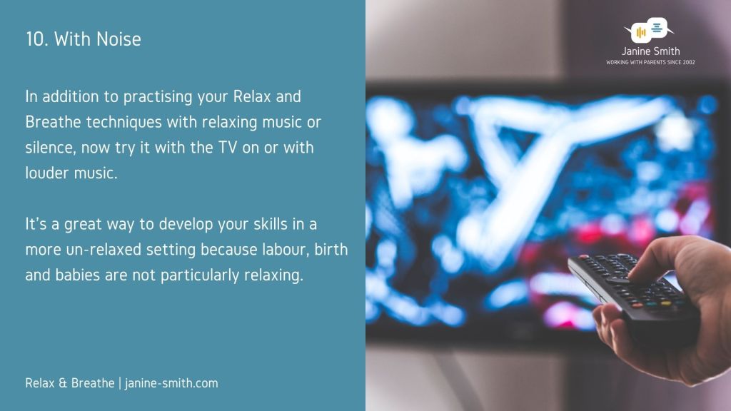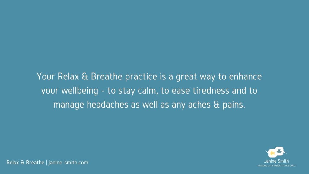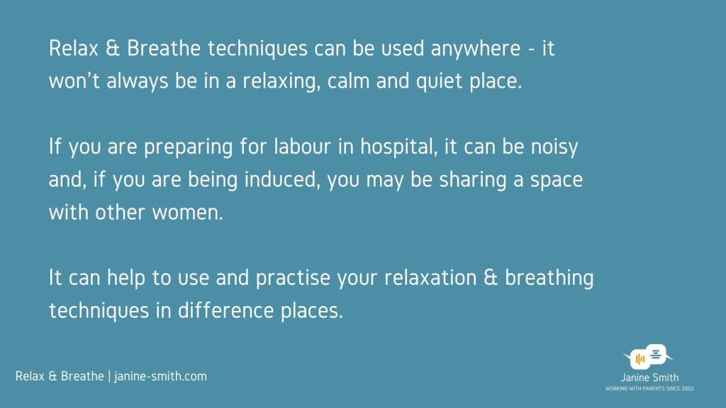 Relax and Breathe is all about simple and effective relaxation and breathing techniques for contractions, for anxiety, for stress and for general wellbeing. There isn’t anything complicated about using and developing your relax and breathe skills, it’s just about slowing your breathing down, letting it be your focus and letting go of any tension.