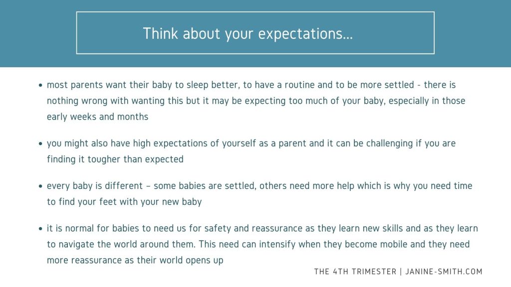 With a foundation of knowledge about newborn babies and what the first 12 weeks may involve, you can think about what might be helpful for you, what support you might need and what you can do to look after you and your baby.